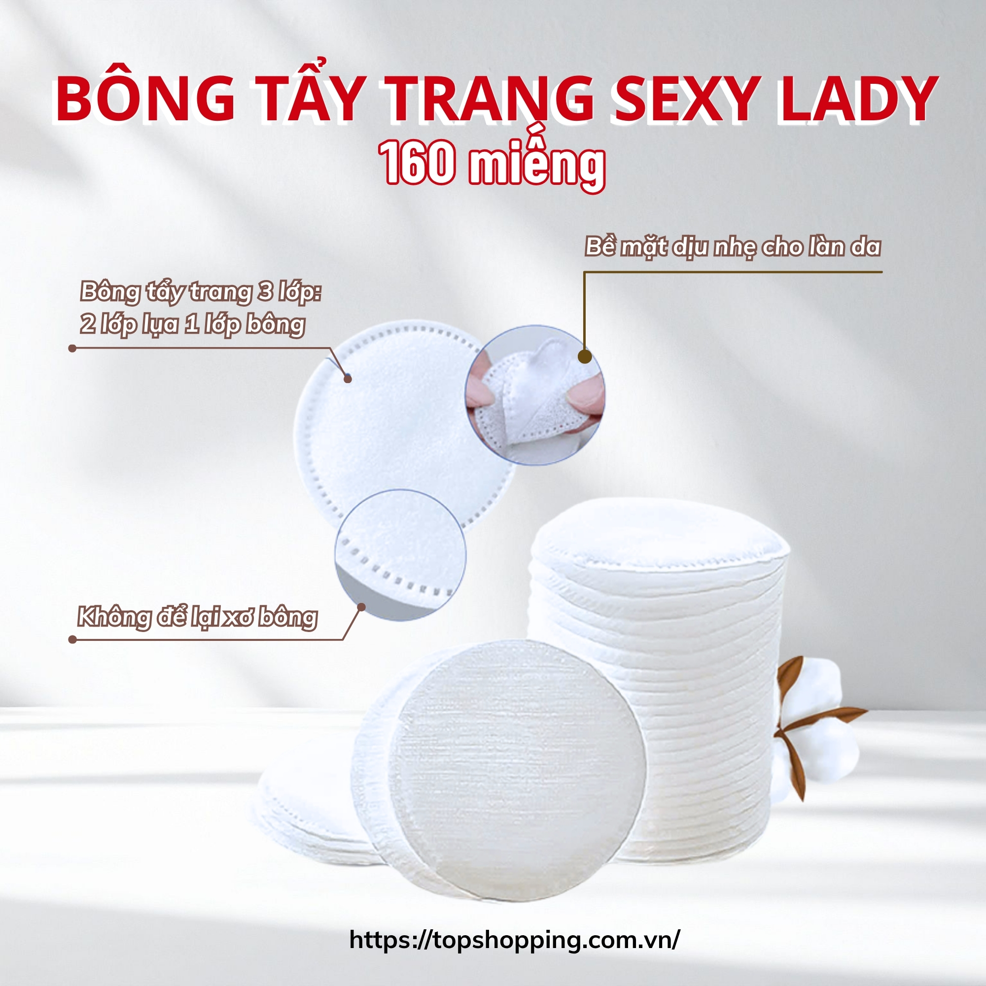 Bông Tẩy Trang Sexy Lady 160 Miếng – Mềm Mịn, Êm Da, Không Xơ Bông