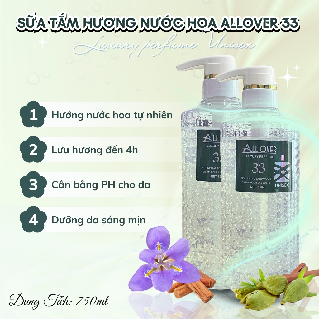 Allover 33: Hương thơm nhẹ nhàng, thanh thoát, phù hợp cho những ai yêu thích sự tinh tế.