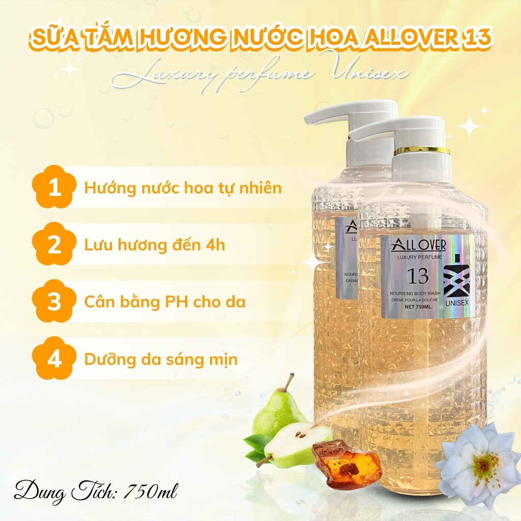 Sữa Tắm Dưỡng Ẩm Hương Nước Hoa Pháp ALLOVER Luxury perfume 750ml